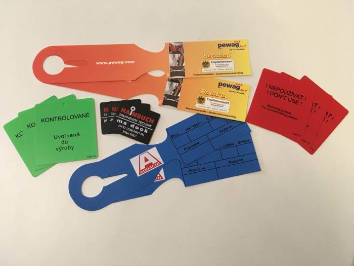 Biztonsági és szállítási táblaként, szállítási címkeként és hasonlók kerül felhasználásra, a gépipari termékek széles skálája számára:
